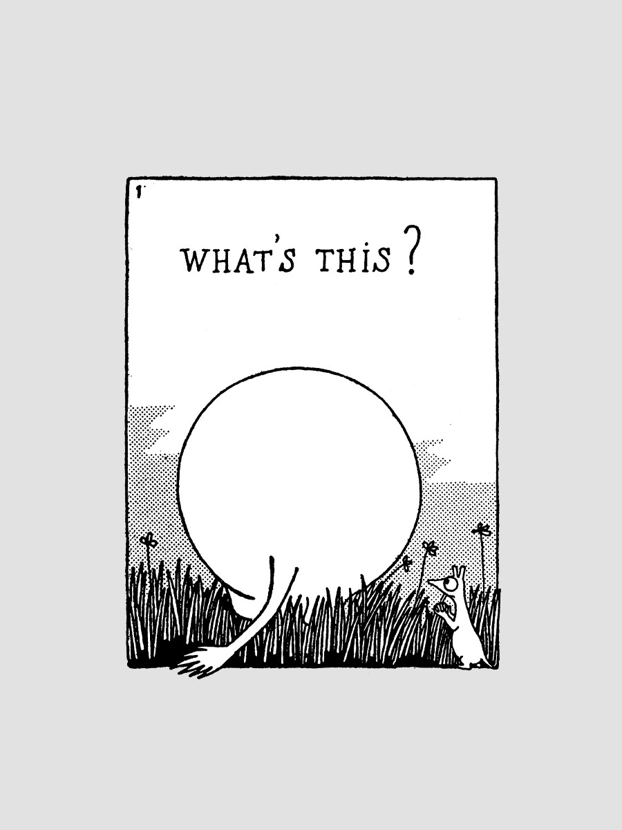 Detta äventyr börjar på samma sätt som alla efterföljande muminserier: den första rutan i serien visar bara Mumintrollets runda bakdel och svans. Rutan innehåller en kryptisk text: Vad är detta?