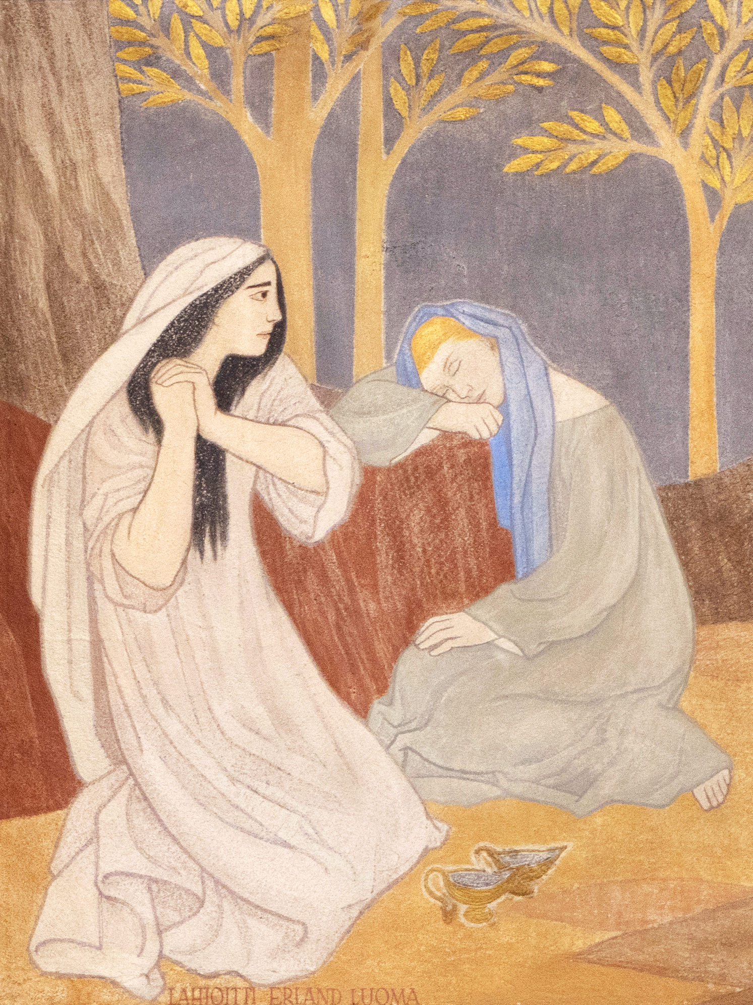 Östermarks kyrka, Östermark, Finland. Tove Janssons altartavla målad i al secco -teknik. Altartavlan är permanent utställd i Östermark kyrka under kyrkans öppettider.